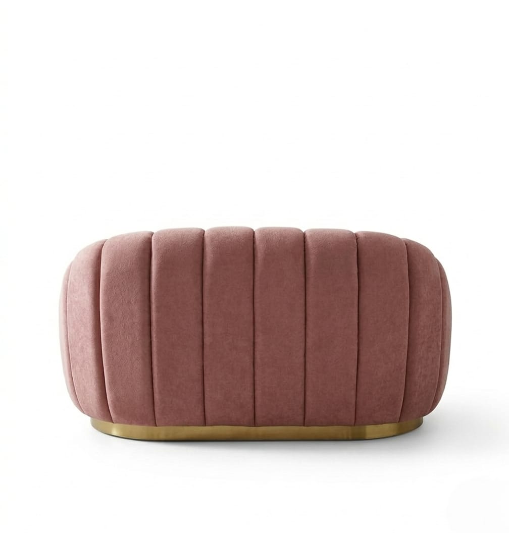 Transform your living space into a sanctuary of modern luxury with the Blush Bloom Compact Sofa by Sarita Furniture. This two-seater masterpiece features a stunning “scalloped” petal design, blending organic curves with high-end glamour. Its soft blush-pink bouclé upholstery and radiant gold base make it an irresistible focal point for any contemporary home, boutique, or luxury lounge.