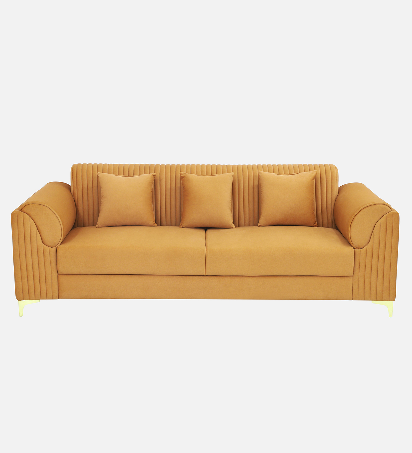 Sarita Furniture Introducing our exquisite three seater sofa crafted with the finest cedar wood, ensuring durability and timeless elegance. Each seat spans a generous 24 inches, offering ample room for relaxation. Adorned with plush cushions filled with high-resilience foam, comfort is paramount. Supported by sleek metal legs, this sofa exudes modern sophistication. Wrapped in luxurious suede fabric, it promises both style and comfort, making it the perfect centerpiece for any living space.